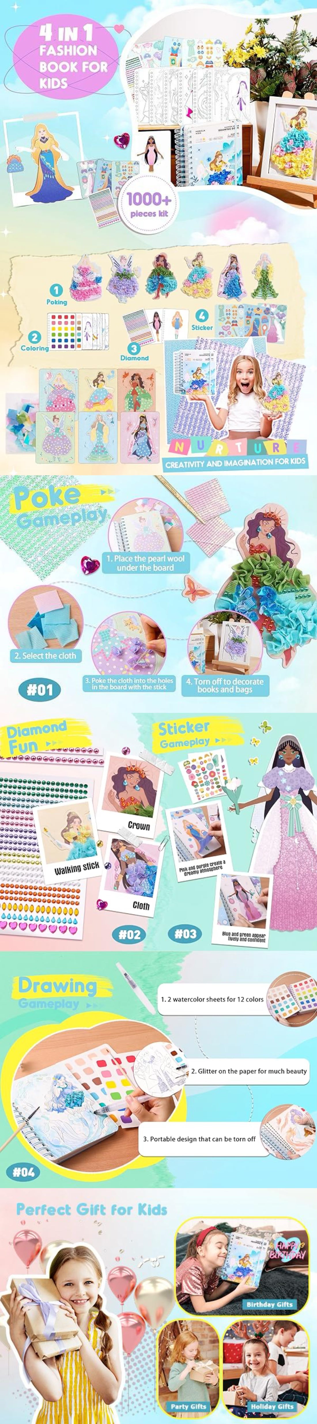 This creative studio also makes a wonderful gift for girls who love princess crafts and imaginative play. It’s perfect for birthdays, Christmas, New Year, Children’s Day, Halloween, classroom rewards, or back-to-school surprises.